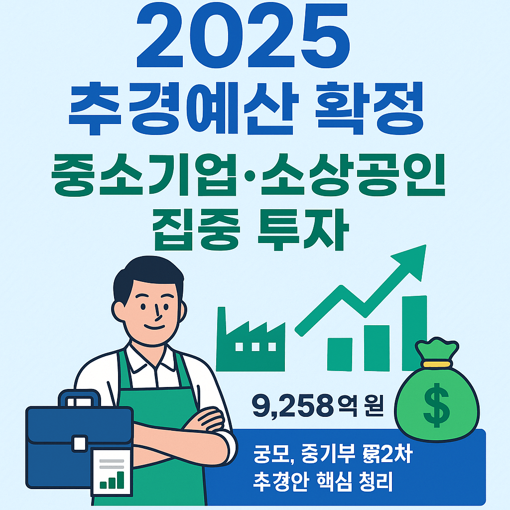 새정부는 경기 회복과 민생 안정을 위한 핵심 수단으로 **제2차 추가경정예산(추경)**을 확정했습니다. 특히 중소벤처기업부(중기부)는 이번 추경을 통해 총 9,258억 원을 확보, 중소기업과 소상공인 지원에 집중 투자할 계획을 발표했습니다.