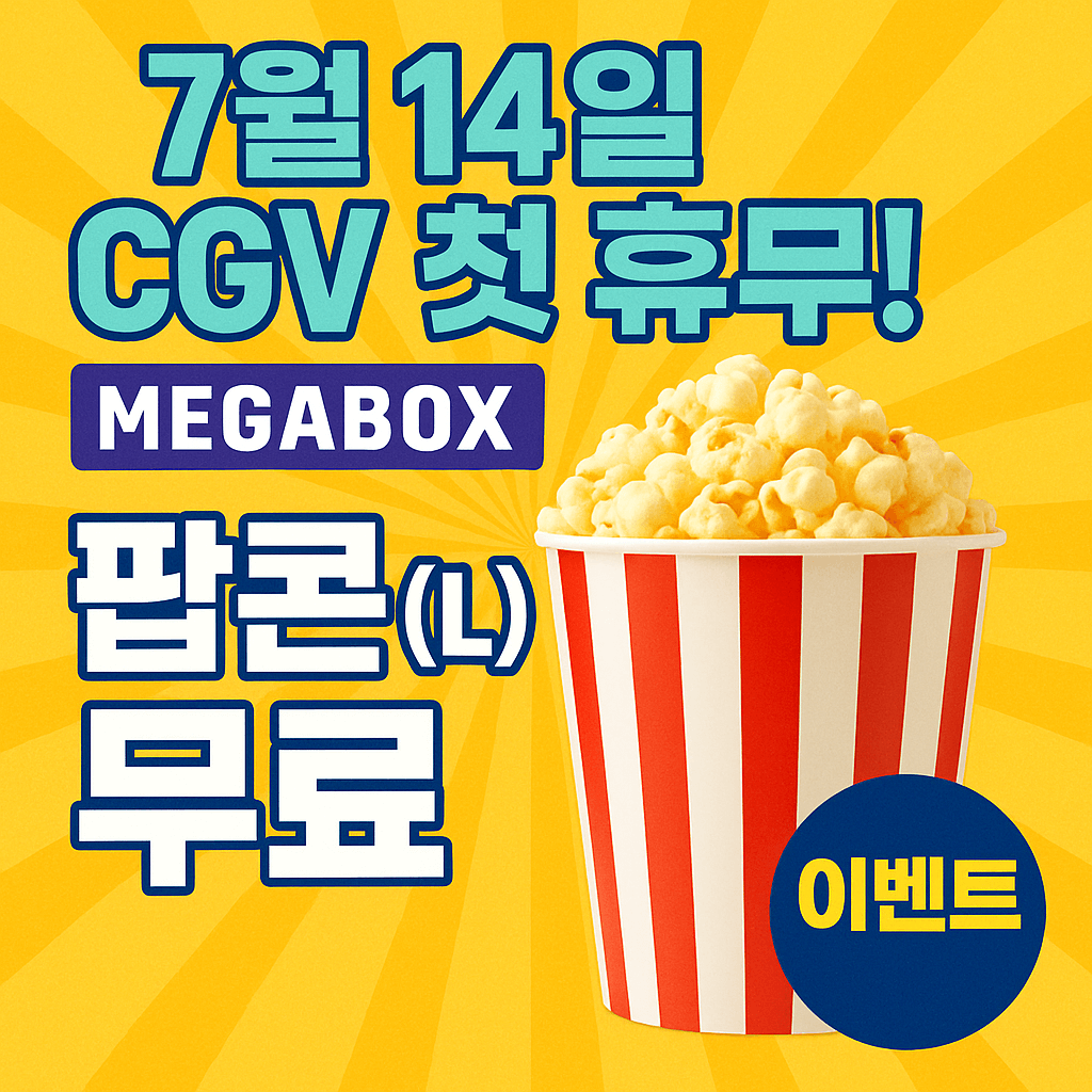 메가박스의 센스 있는 무료 팝콘 이벤트로 이번 주말 데이트나 가족 나들이를 더욱 즐겁게 만들어보세요!